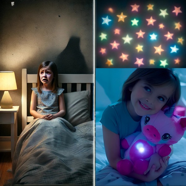 Pritisnite STARBEAR-ov trbuh i gledajte kako zvijezde plešu po stropu i zidovima. Bilo tijekom priče ili kao umirujuće noćno svjetlo, ovaj svjetleći zaslon pretvara svaku prostoriju u umirujući i čarobni prostor,pomažući djeci da mirno odlutaju u zemlju snova.