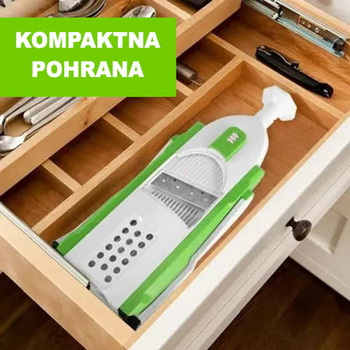 Sklopivi dizajn štedi prostor, što ga čini savršenim za kuhinju bilo koje veličine. Također vam omogućuje brzu i sigurnu pripremu voća i povrća u raznim oblicima!